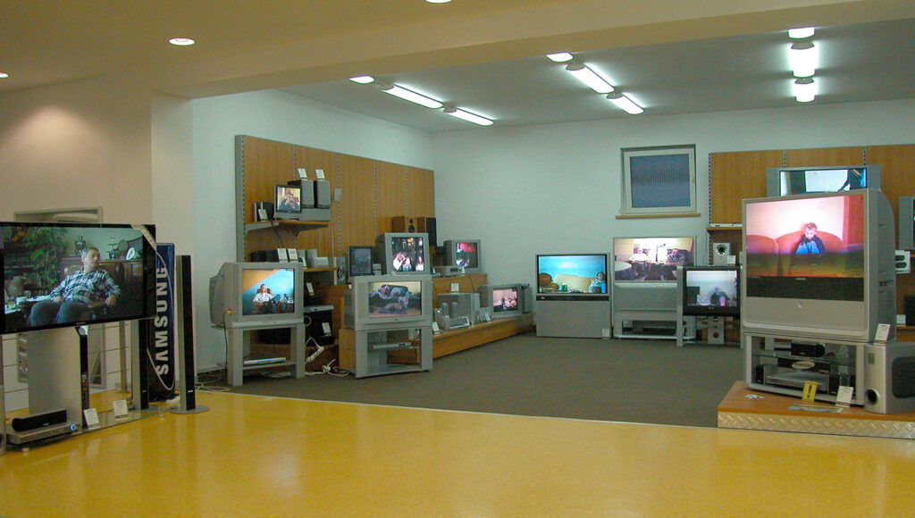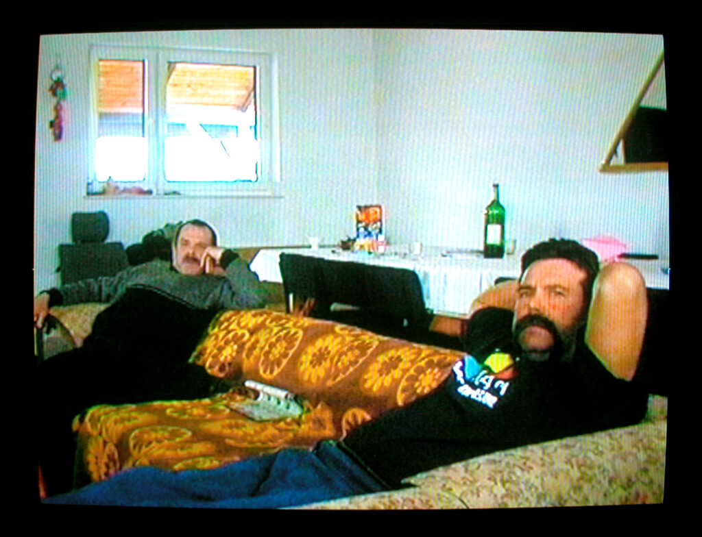 Tematem instalacji jest oglądanie telewizji, która posiada moc skupiania i przyciągania naszej uwagi. Potrafi wyłączyć nas na chwilę z rzeczywistości i to bez względu na wiek, miejsce zamieszkania itp. Na prezentowanych filmach próbuję uchwycić momenty, z którą większość z nas ma do czynienia na co dzień, która stopiła się z rytmem naszego życia, do pewnego stopnia stała się nieomal funkcją organizmu, a poprzez to jest przezroczysta, trudna do zauważenia. Postanowiłam zarejestrować ten proces, potwierdzić jego istnienie. Odbiorca instalacji skonfrontowany jest z odwrotnym kierunkiem patrzenia, obserwuje z punktu widzenia telewizora.
