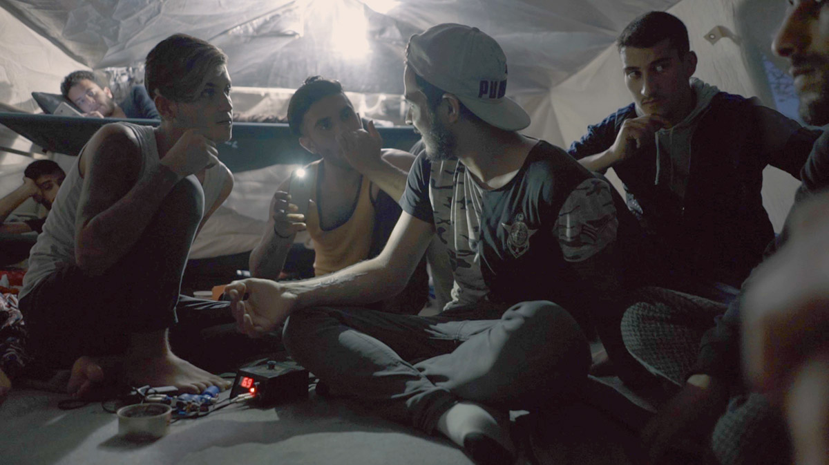 On the Greek Aegean Islands, thousands of asylum seekers are imprisoned in hellish conditions for an indefinite period of time – their application process can last for months or years, with no certainty about the result. Suffering affects the body and mind of those who are detained and deprived of control over the circumstances of their lives. In these camps, people use their bodies as an instrument of resistance to and/or a coping mechanism to reality – the act of tattooing and other forms of body treatment (self-harm) – in an attempt to regain power and autonomy. The own body becomes a space of personal and political expression. A piece of reality that can be controlled.